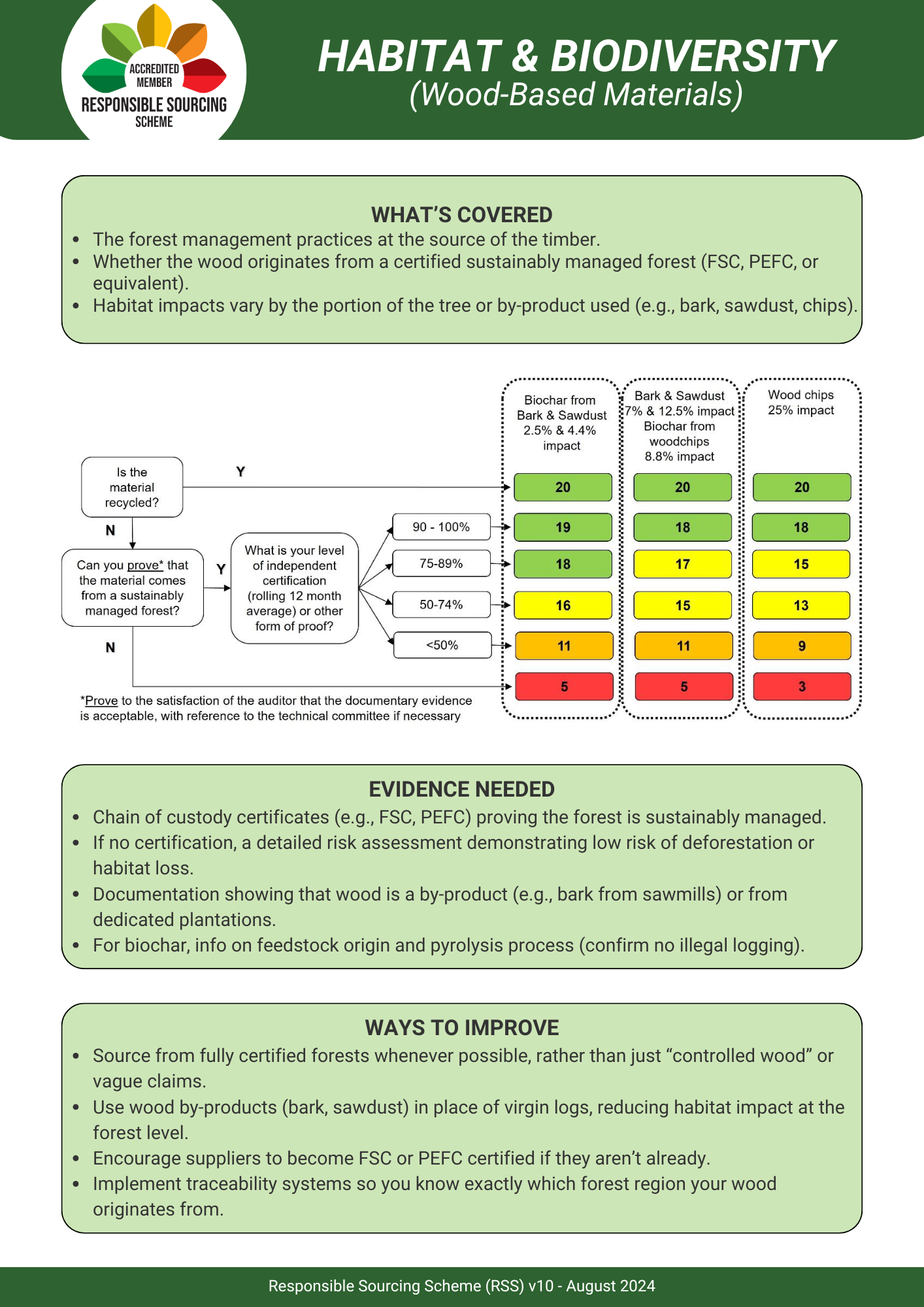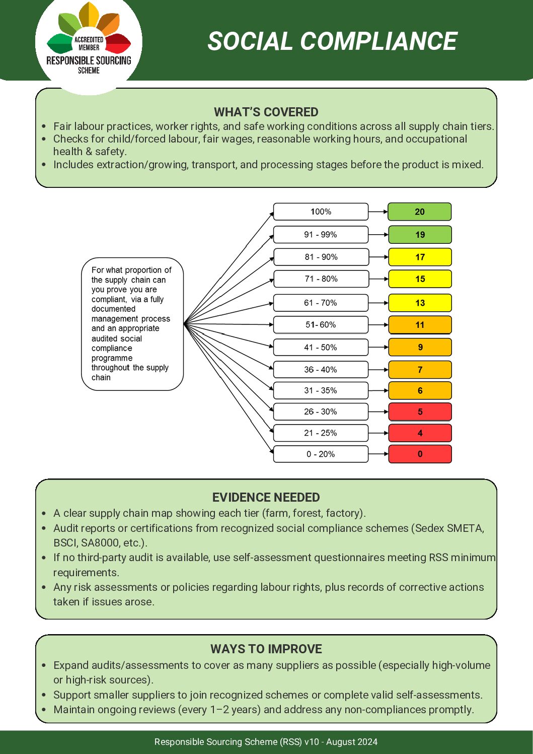 Each snapshot highlights what’s coveredwhat evidence is required, and practical improvement tips. Together, they form a comprehensive guide for any organisation aiming to lower its environmental footprint, support ethical labour practices, and confidently market its products as responsibly sourced.