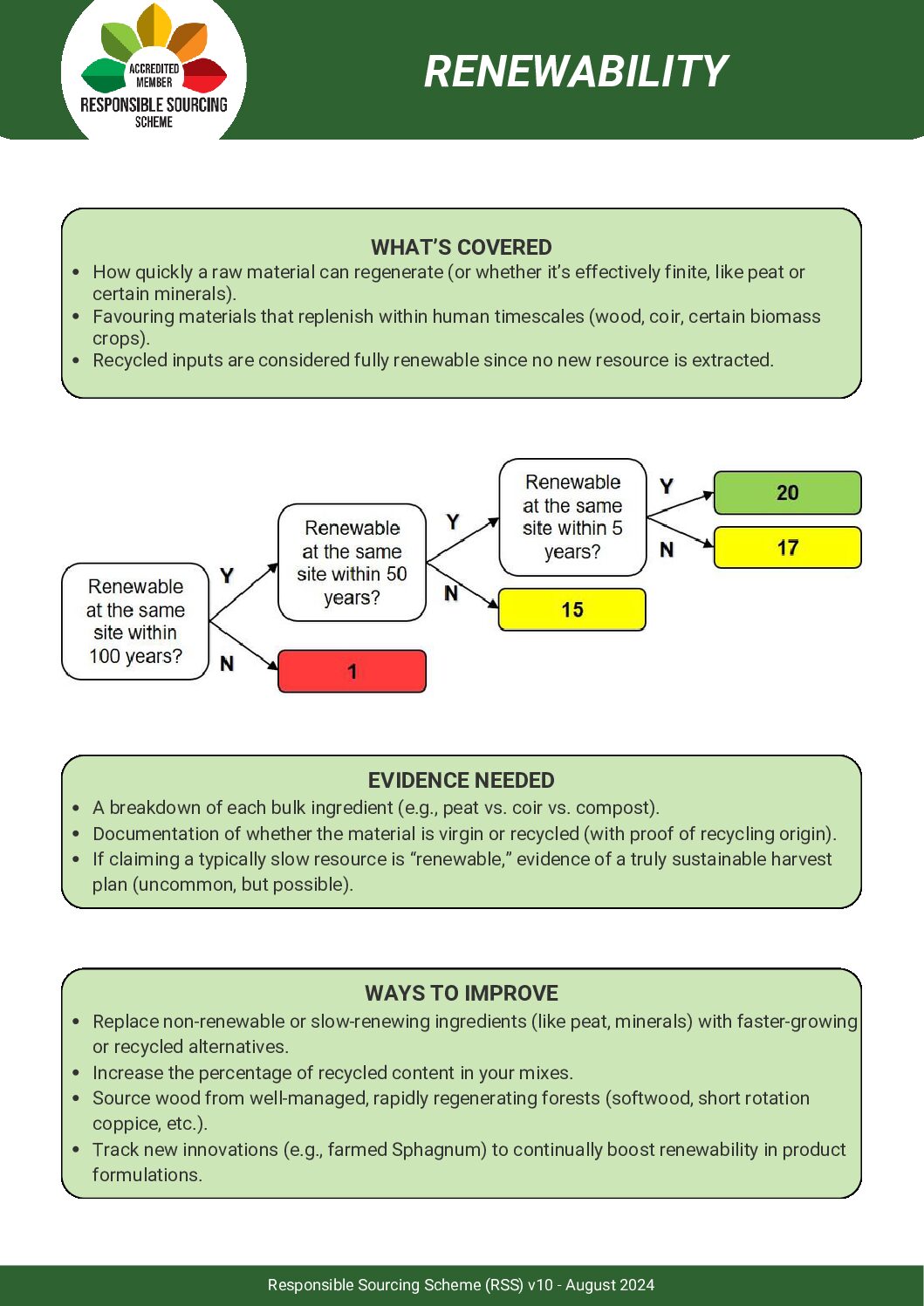 The Responsible Sourcing Scheme (RSS) is designed to help growing media manufacturers, suppliers, and end users understand the environmental and social impacts of raw materials. By assessing each major component—from peat to coir, wood fibre to minerals—the scheme provides a clear framework for measuring responsible sourcing across multiple criteria.